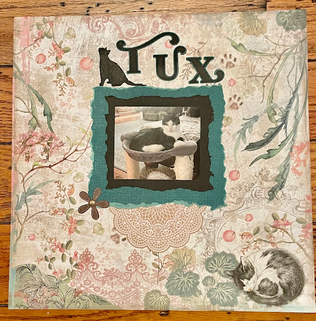 For my layout I chose the right hand column ~ Flowers, Torn Paper and 1 Photo. The photo is of my cat Tux.